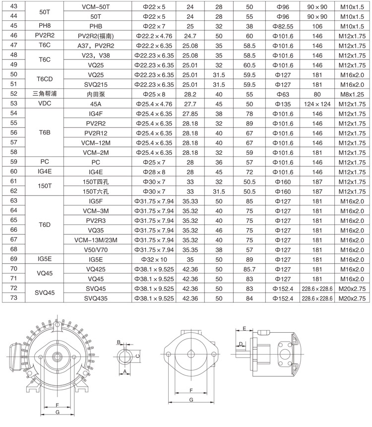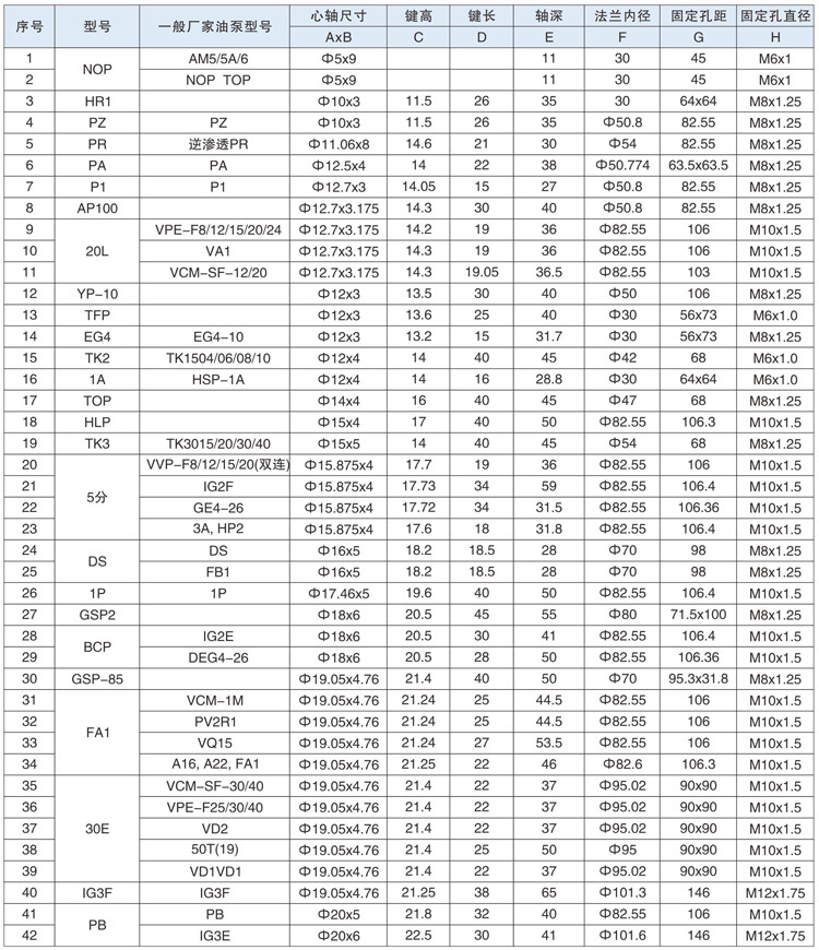 各种型号油泵尺寸规格表